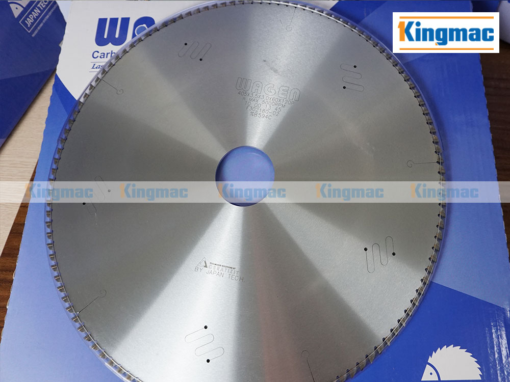 Lưỡi cắt nhôm 405 Wagen có thông số kỹ thuật: đường kính ngoài 405mm, đường kính trục 60mm, độ dày me 3.5mm, số răng là 100 răng.