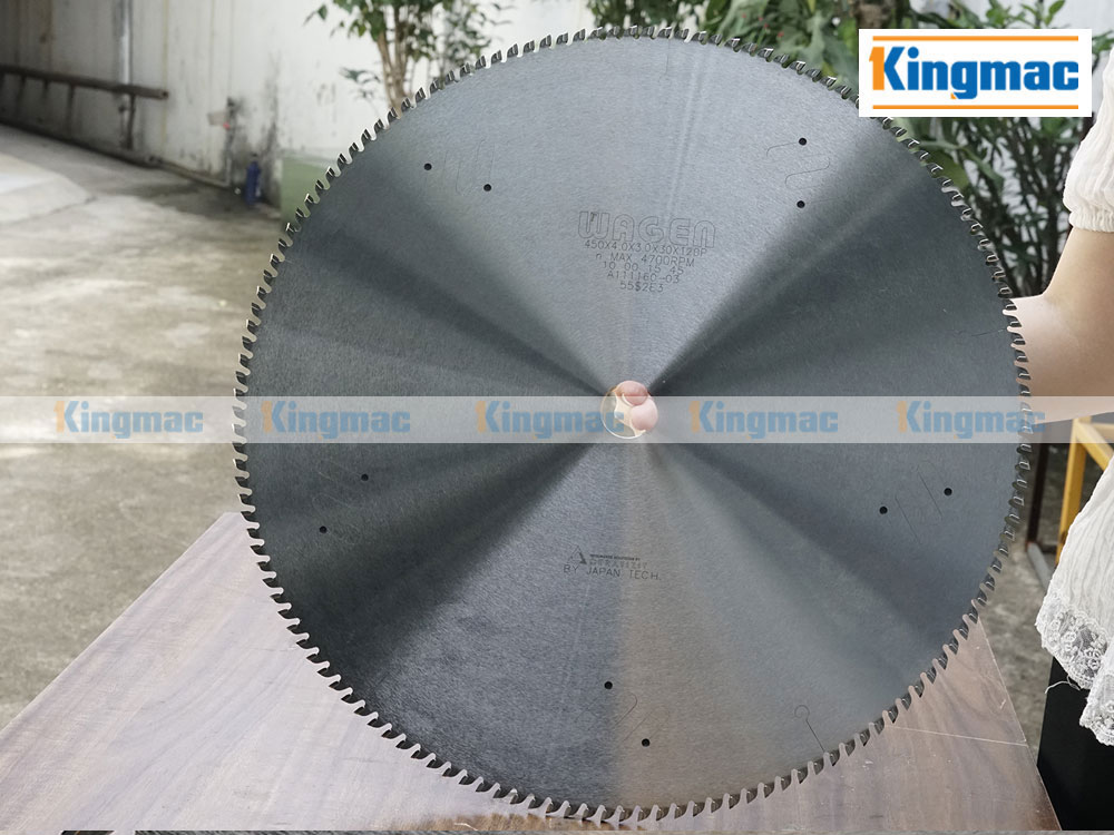 Lưỡi cắt nhôm 450 Wagen có thông số kỹ thuật: đường kính ngoài 450mm, đường kính trục 30mm, độ dày me 4mm, số răng là: 120 răng.